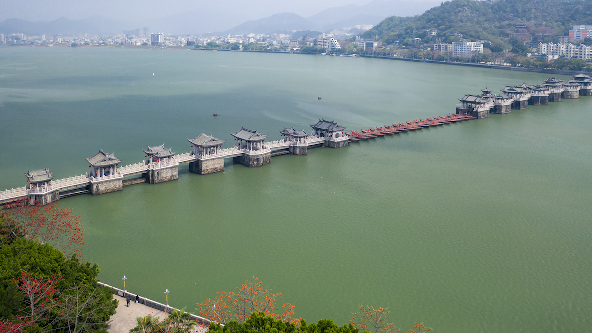 广济桥古称康济桥,又称湘子桥,始建于南宋乾道七年(公元1171年),位于潮州市湘桥区古城东门外,横跨韩江东西两岸,全长518米。它集梁桥、浮桥、拱桥于一体,与河北赵州桥、北京卢沟桥、福建洛阳桥并称为中国四大古桥。